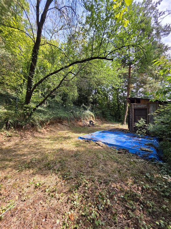 Na pozemku stojí jedna stavba (chatka s č.ev.32), jejíž charakter umožňuje okamžité užívání, avšak s případnou možností dalšího stavebního vývoje (popsáno výše), ať už jde o rekonstrukci existující stavby nebo postavení nového domova podle vlastních představ. Zajímavou vlastností je vrtaná studna, která zajišťuje dostatek vody pro běžné potřeby. Pozemek není napojen na plynovod ani kanalizaci, což je možné vyřešit vybudováním ČOV nebo jímky.
